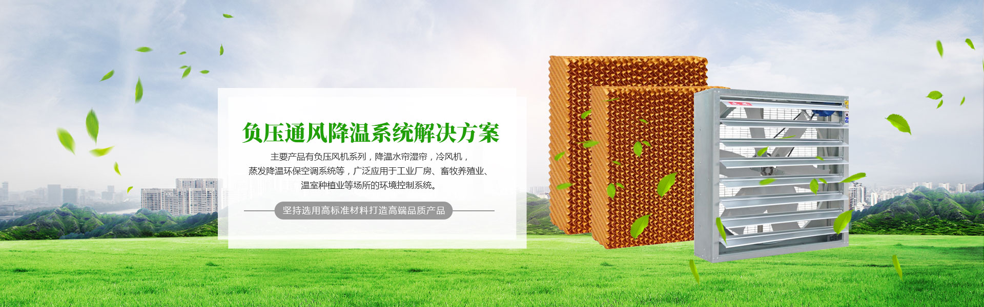 主要產(chǎn)品有負(fù)壓風(fēng)機(jī)系列,降溫水簾濕簾,冷風(fēng)機(jī),蒸發(fā)降溫環(huán)保空調(diào)系統(tǒng)等,廣泛應(yīng)用于工業(yè)廠房、畜牧養(yǎng)殖業(yè)、溫室種植業(yè)等場所的環(huán)境控制系統(tǒng)。同行業(yè)首先通過質(zhì)量技術(shù)監(jiān)督局的產(chǎn)品標(biāo)準(zhǔn)登記,首先通過ISO9001國際質(zhì)量管理體系認(rèn)證,且大量出口至歐、美、亞、非、拉丁美洲等58個國家與地區(qū)。堅(jiān)持以打造百年品牌為發(fā)展目標(biāo),堅(jiān)持選用高標(biāo)準(zhǔn)材料打造高端品質(zhì)產(chǎn)品,提供專業(yè)的解決方案及一站式配套設(shè)計安裝服務(wù)。